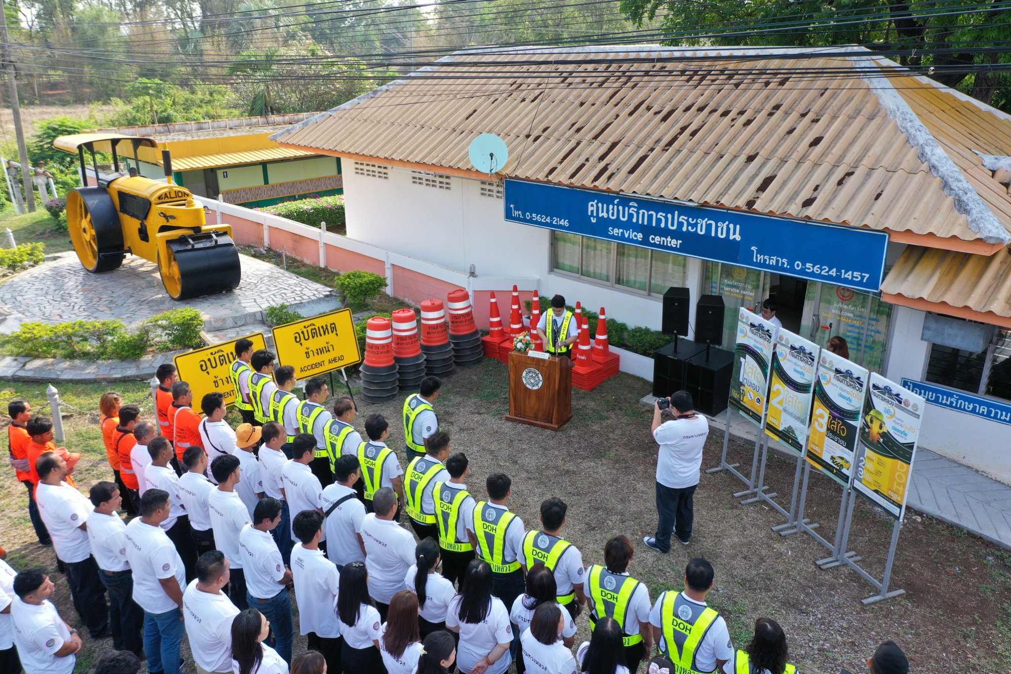 นายศรัณย์รัฐ พวงพัฒน์ รองผู้อำนวยการสำนักงานทางหลวงที่ 11 ตำแหน่งที่ 2 เป็นประธานกล่าวเปิดศูนย์อำนวยความสะดวกและปลอดภัยช่วงเทศกาลสงกรานต์ปี 2568 บนทางหลวงหมายเลข 11 ตอน ช่องแค - ตากฟ้า ที่ กม.38+850 ด้านขวาทาง