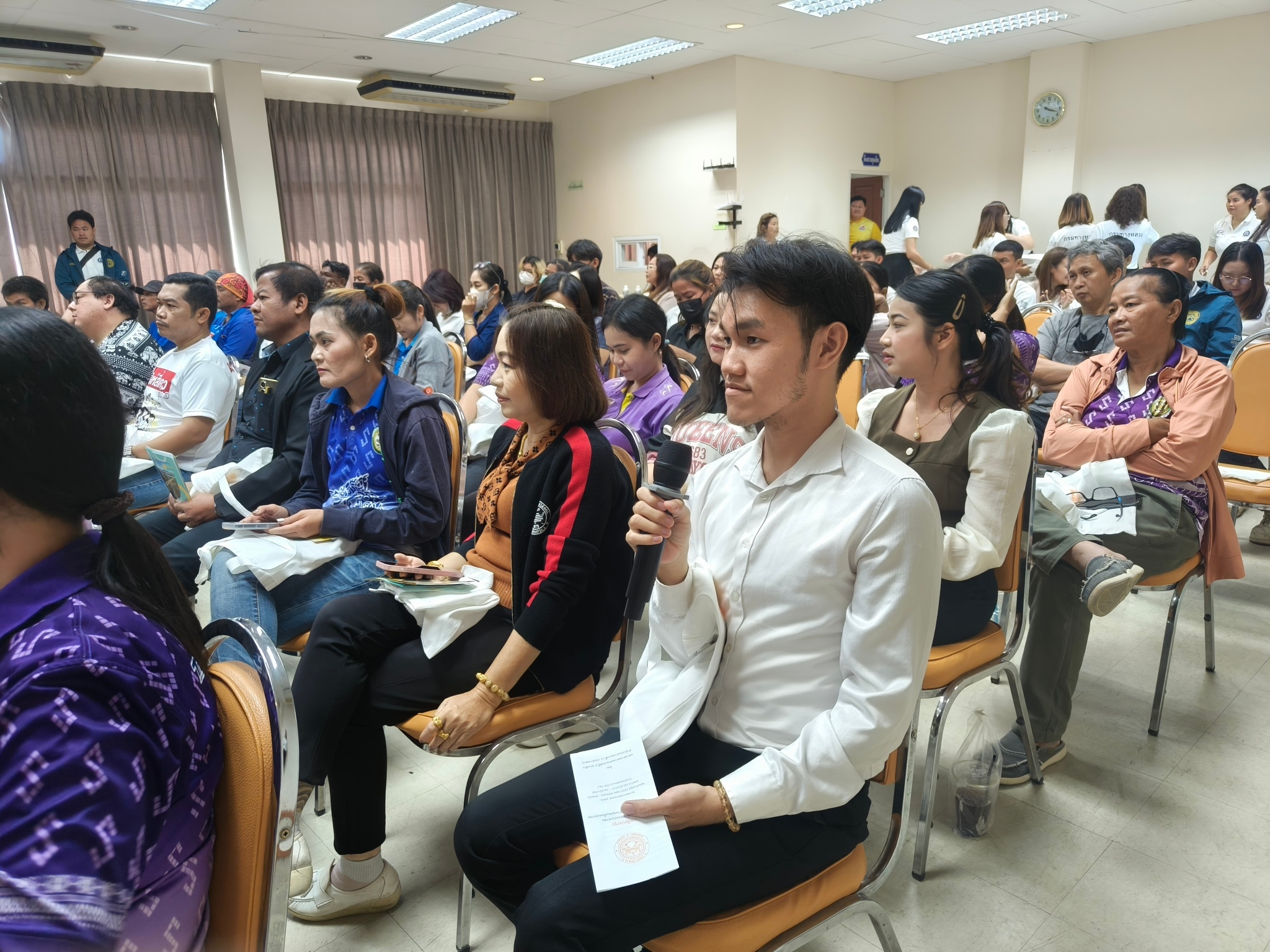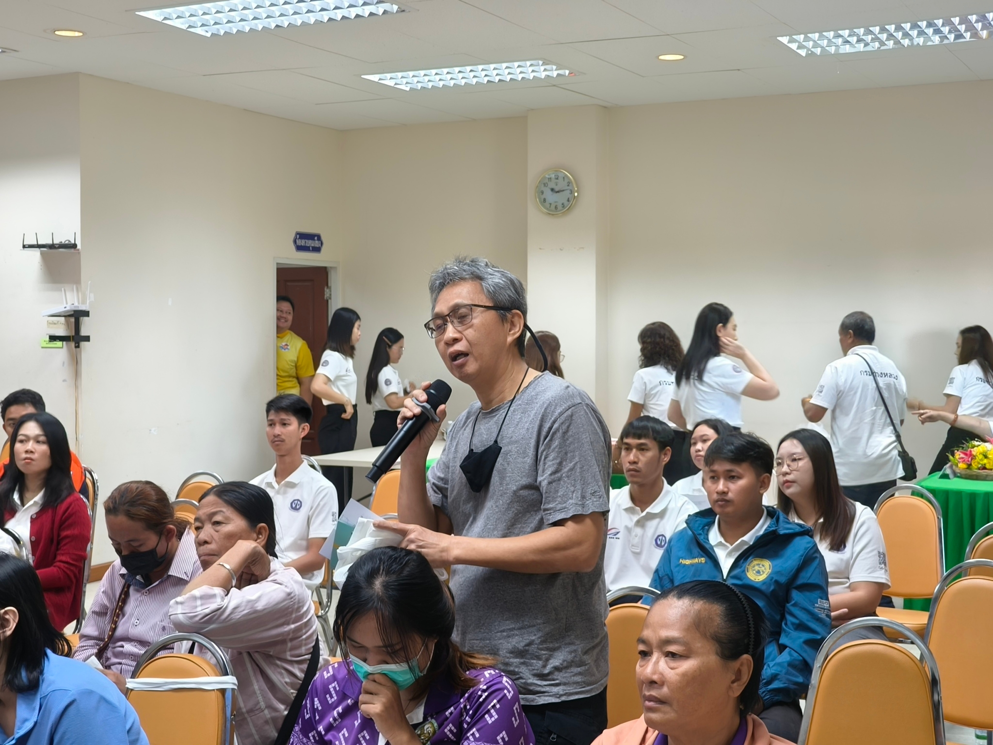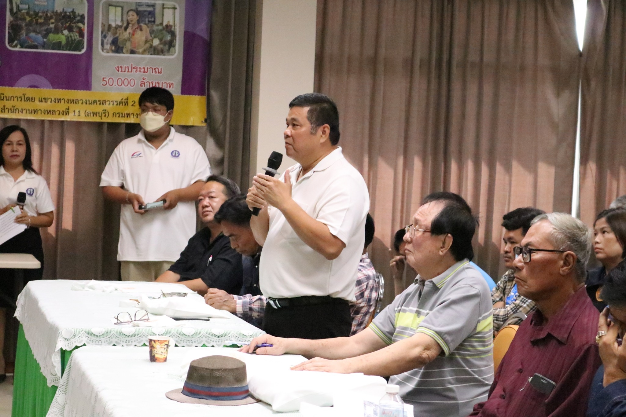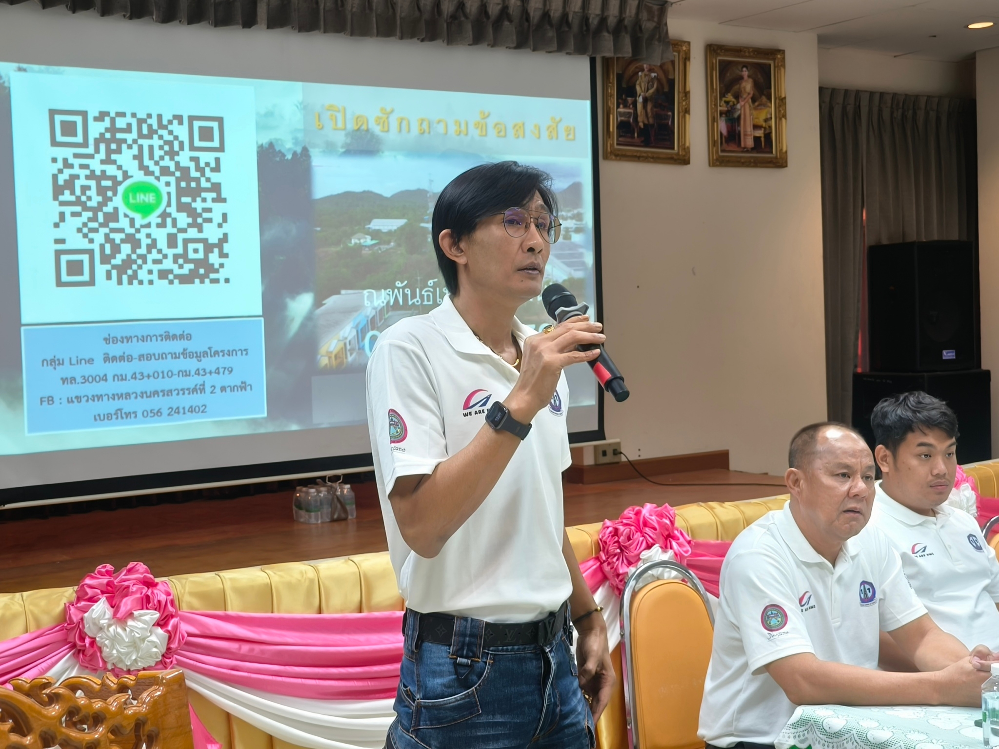 ประชุมการมีส่วนร่วมของประชาชน กิจกรรมกิจกรรมก่อสร้างทางหลวงผ่านชุมชนเพื่อคนทุกกลุ่ม ในทางหลวงทางหลวงหมายเลข 3004 ตอน พระนอน - ท่าตะโก