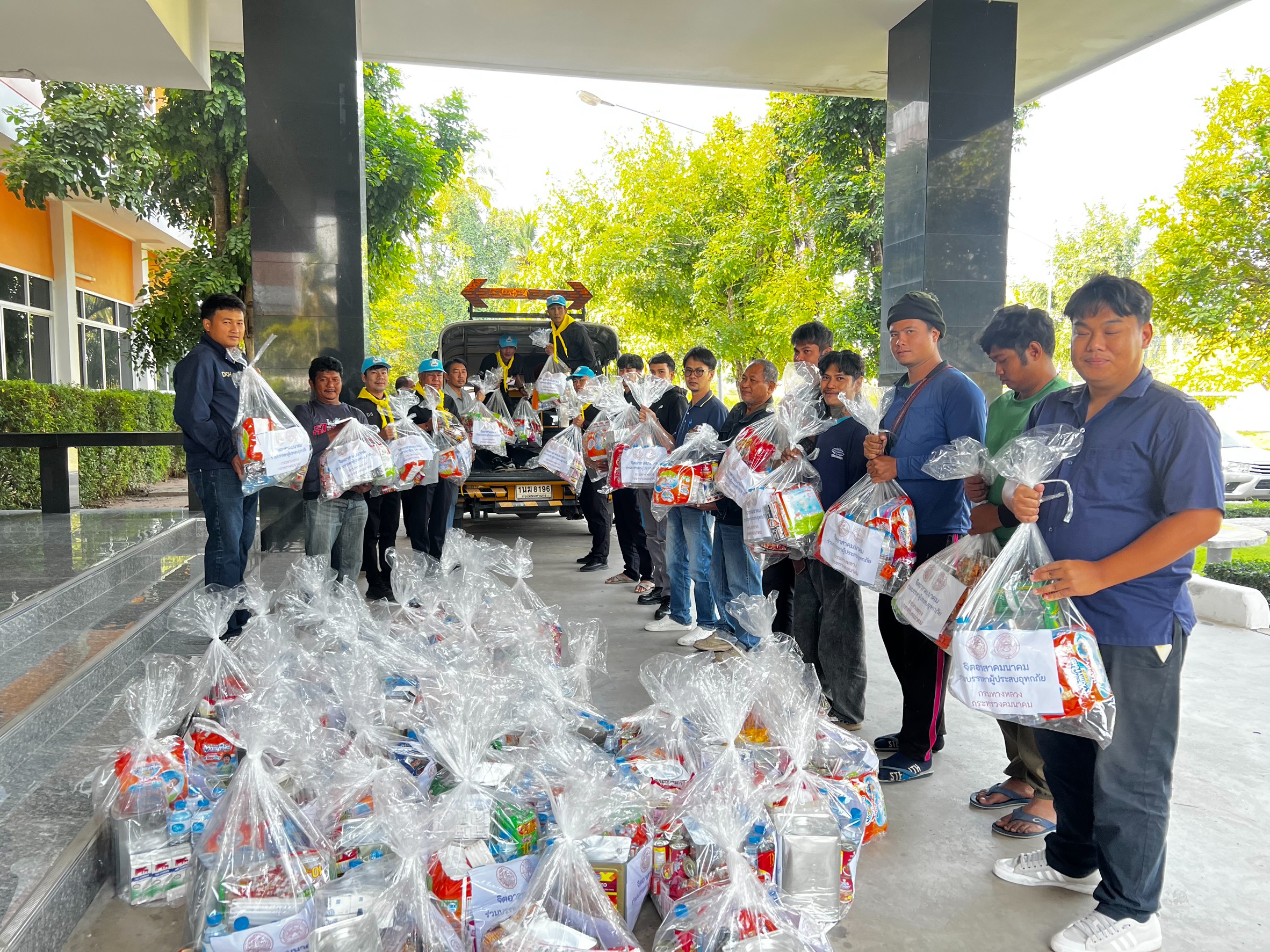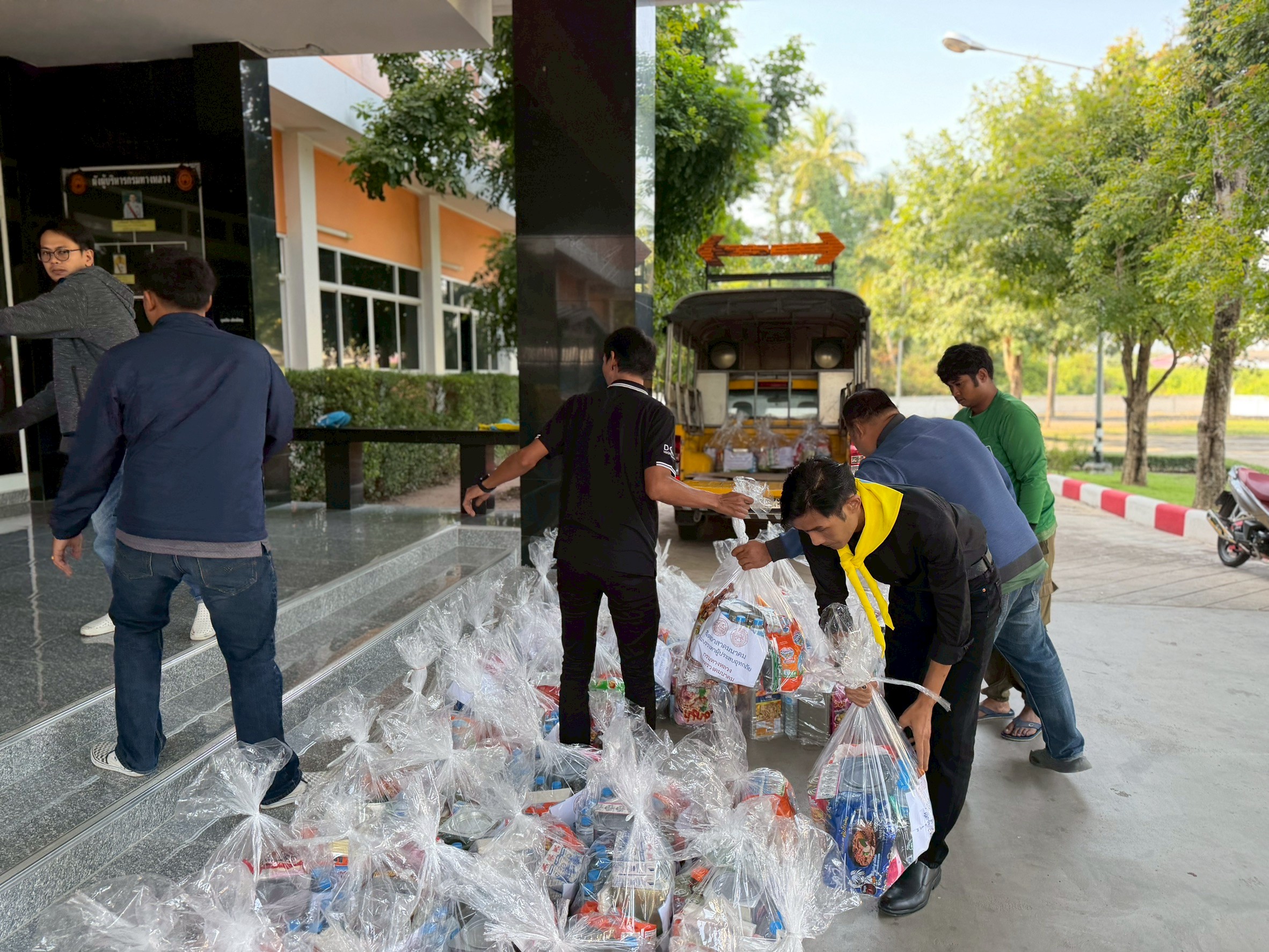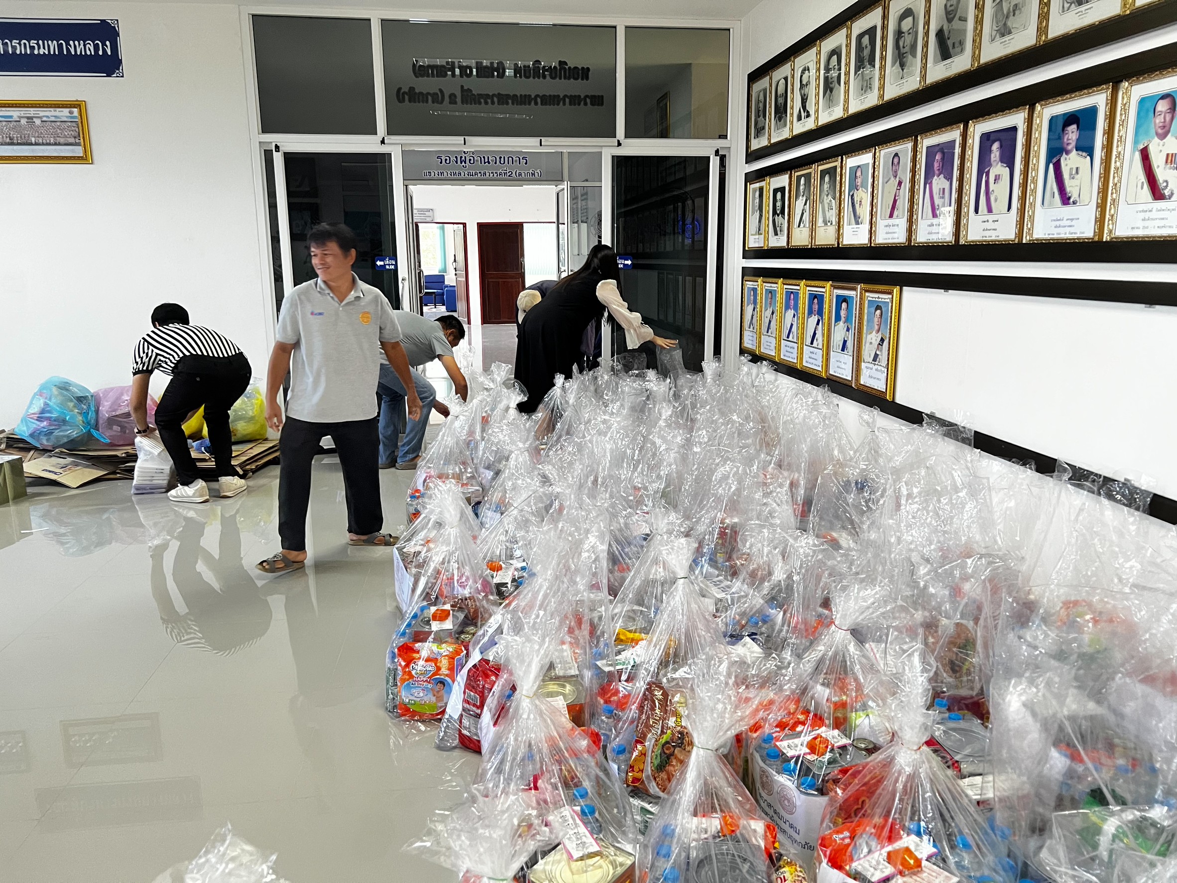 นำทีมเจ้าหน้าที่ เครือข่ายจิตอาสาคมนาคม จัดถุงยังชีพ ส่งต่อไปยัง สำนักงานทางหลวงที่ 11 (ลพบุรี)