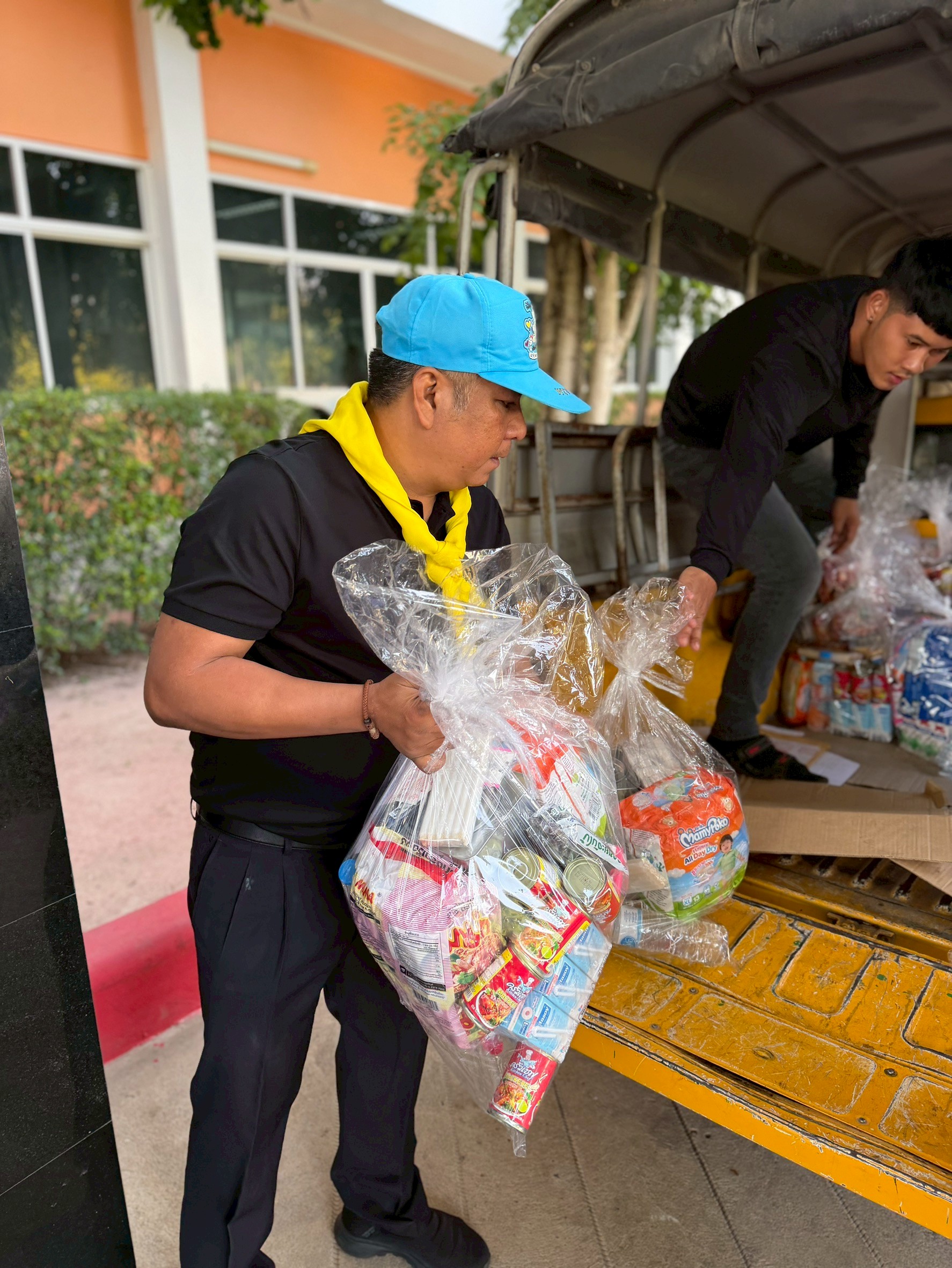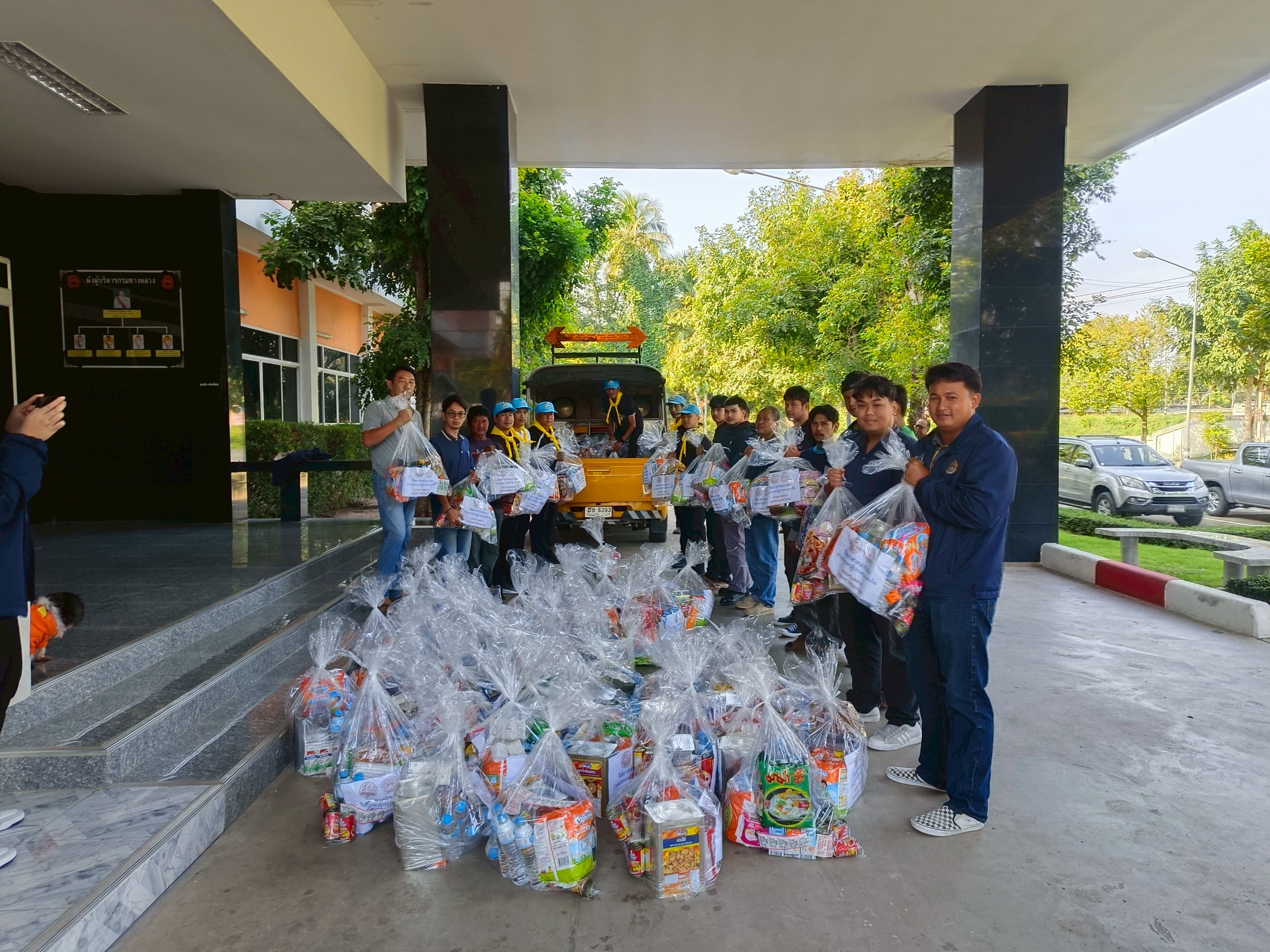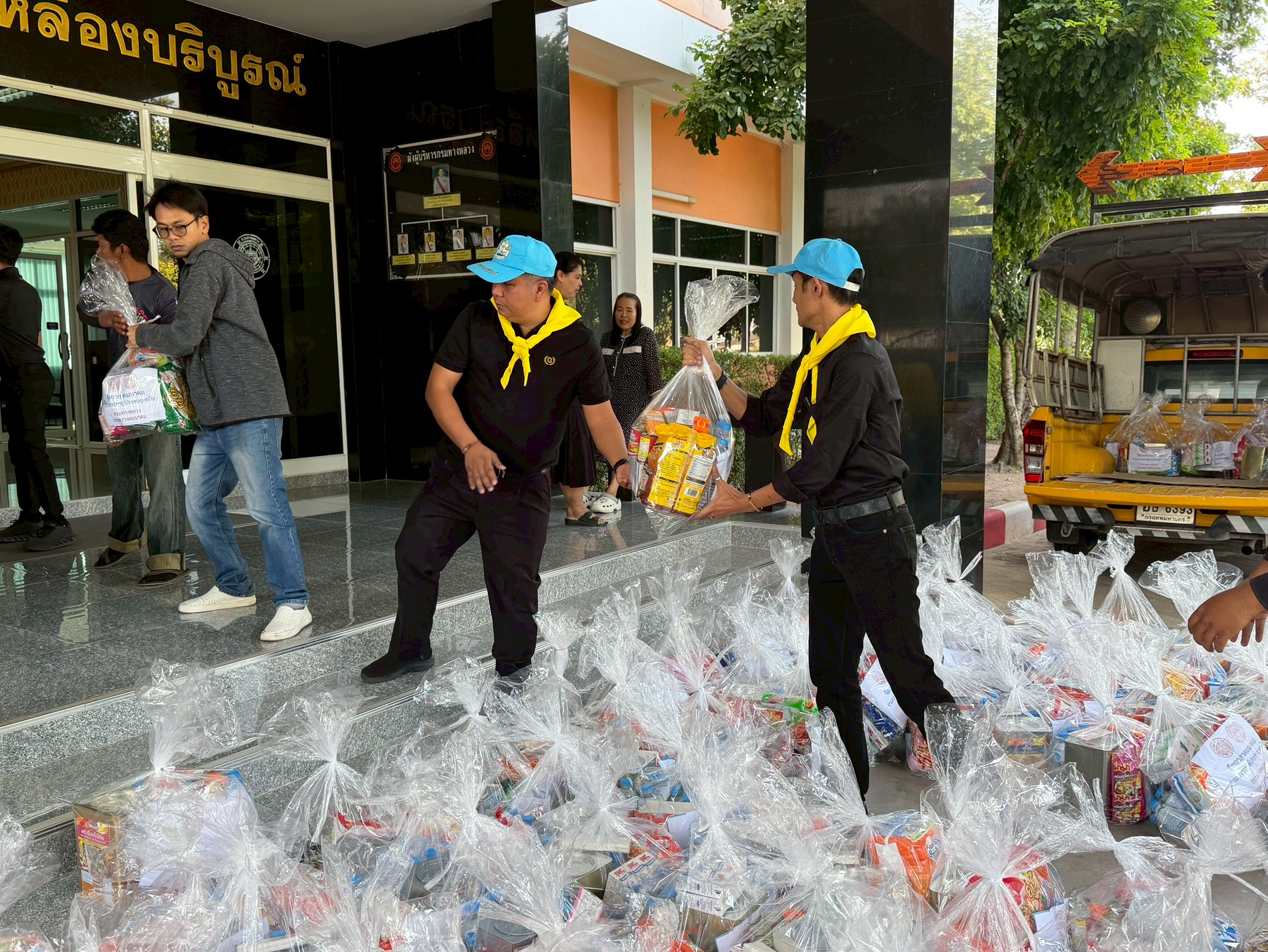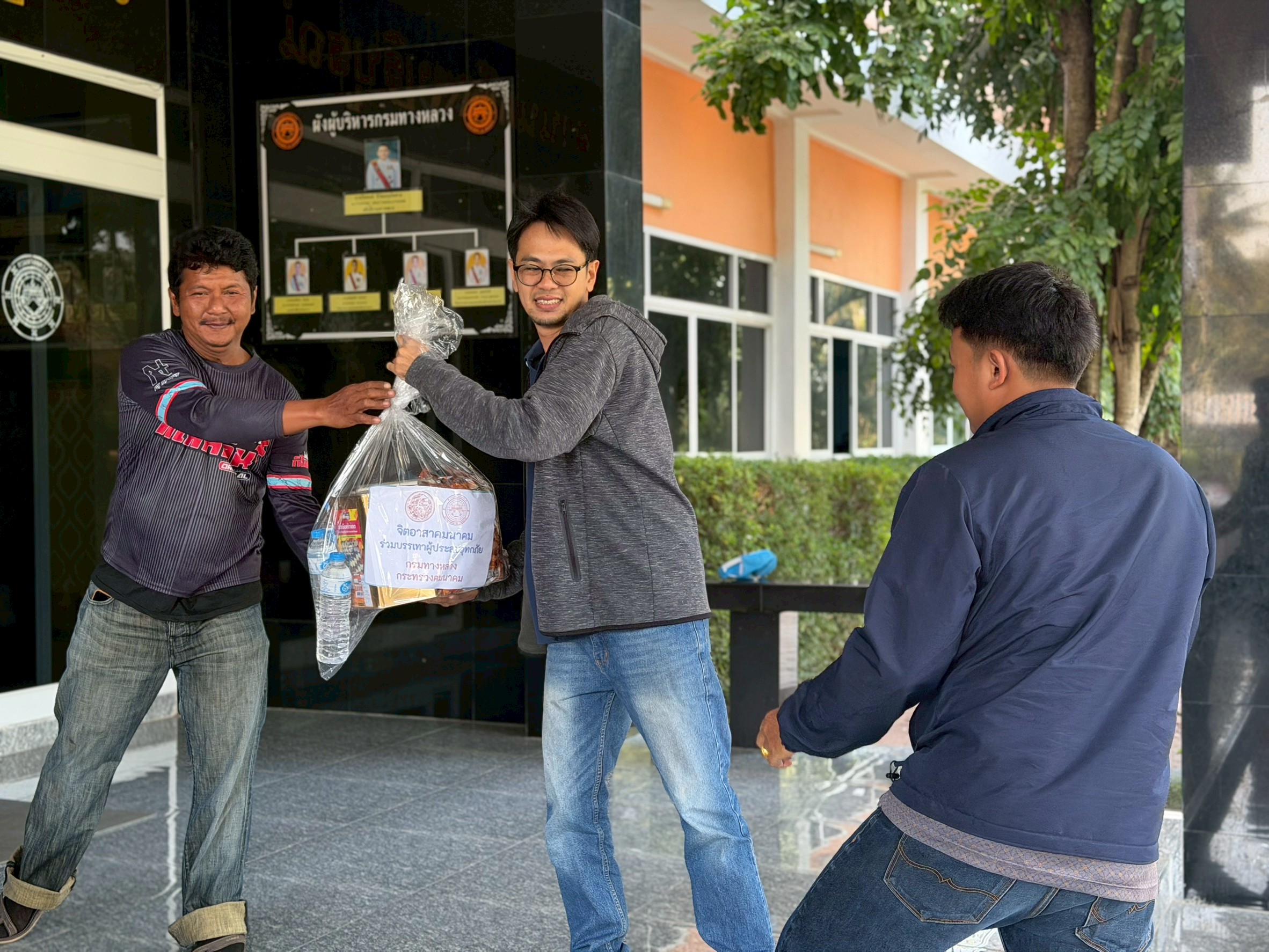นำทีมเจ้าหน้าที่ เครือข่ายจิตอาสาคมนาคม จัดถุงยังชีพ ส่งต่อไปยัง สำนักงานทางหลวงที่ 11 (ลพบุรี)