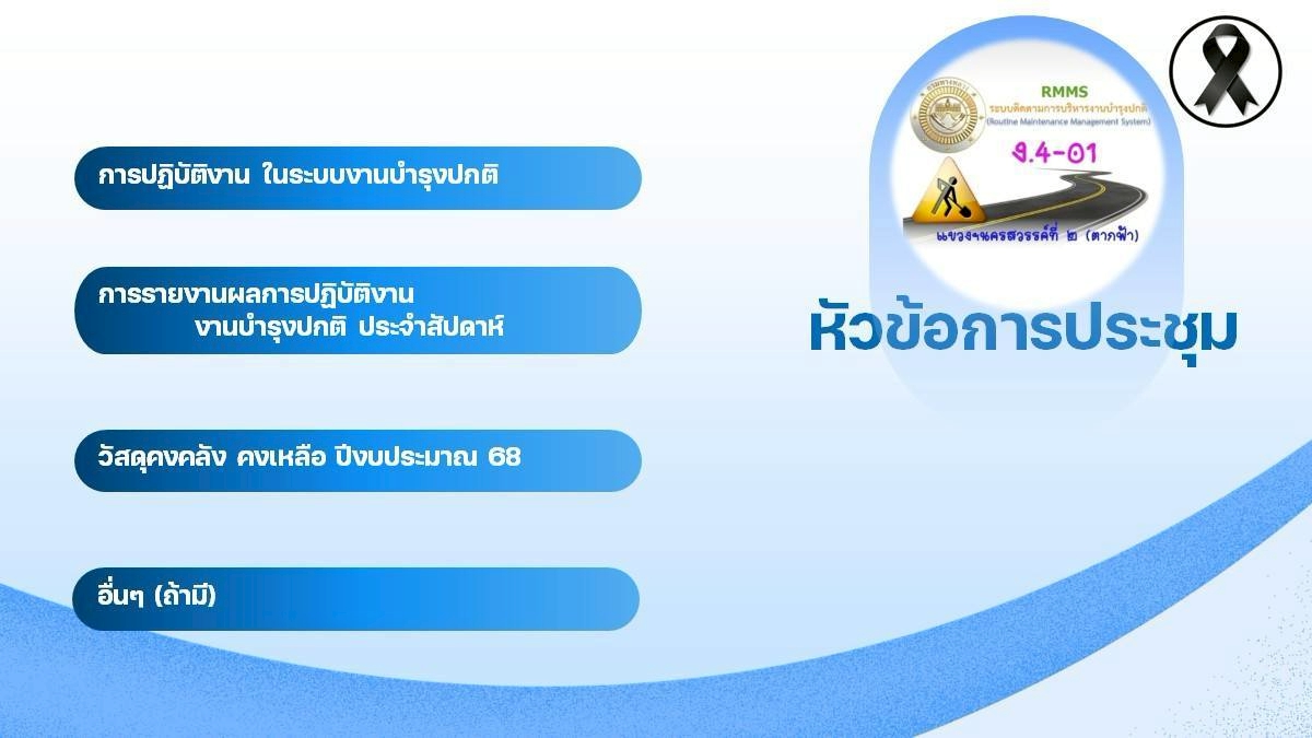 ข้อมูลภาพกิจกรรม : ประชุม ข้อตกลง แนวทางการปฏิบัติงาน ระบบติดตามการบริหารงานบำรุงปกติ